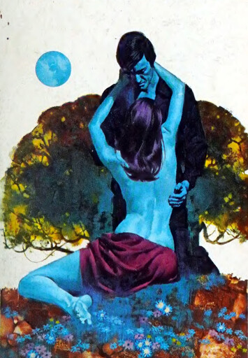 If I stare at this long enough, I kind of think that Ms. Blue Ladyperson, whether Andorian, mermaid, or Smurf, might actually be strangling the guy and saying something like “Give me back my bra, goddammit! It’s fucking freezing in the garden of earthly delights this time of year!”