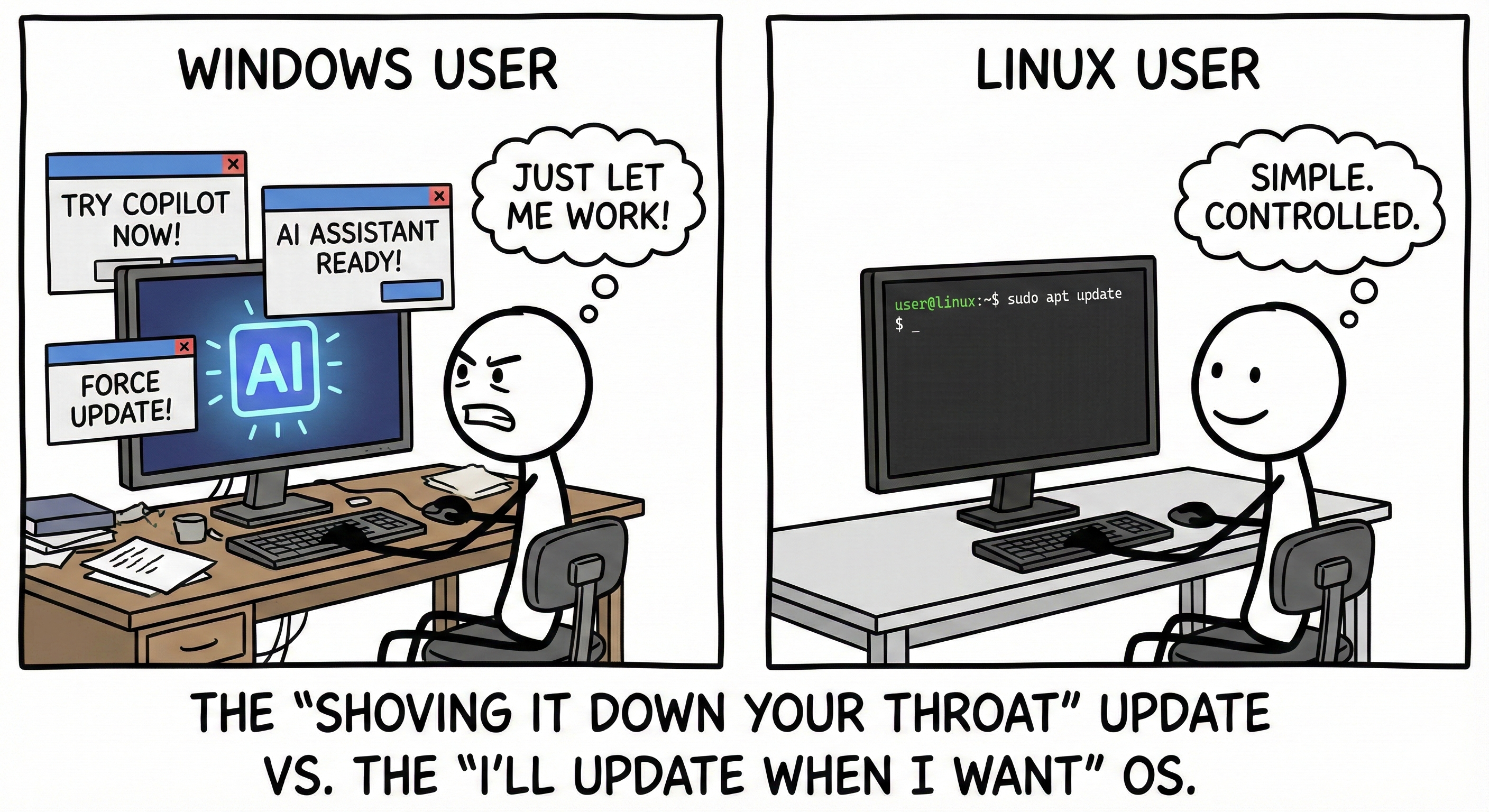 A linux update instead brings the joy of “nice! New things everyone was waiting for!”
