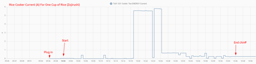 Cooking 1 cup of white rice in a Zojirushi rice cooker. I’m surprised at the slow intro/outro. This rice cooker only gives a countdown when it’s within 10 minutes or so of being done, so I was wondering if you could tell more about how it’s doing with a current trace.