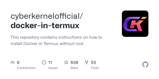 arrow-up11arrow-down1external-linkGitHub - cyberkernelofficial/docker-in-termux: This repository contains instructions on how to install Docker in Termux, without root.github.comWhiteOakBayou@lemmy.world to Selfhosted@lemmy.worldEnglish · 25 days agomessage-square9linkfedilinkfile-text