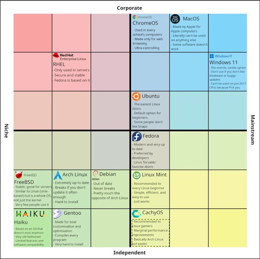 Hmm, I don’t see how Corporate can be on a scale though. Either the distro is run by a corporation, or it’s not.