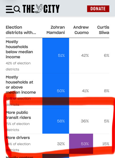 Districts with the freaks that drive cars in NYC voted more against Mamdani and everyone else for Mamdani.