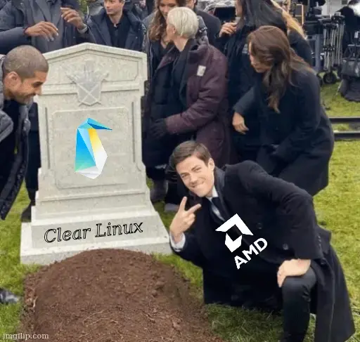 It’s a long bow to draw, but you could argue that AMD contributed to killing Clear Linux by taking back a lot of market share (particularly in the lucrative server market), forcing Intel to make big budget cuts, which included Clear Linux.