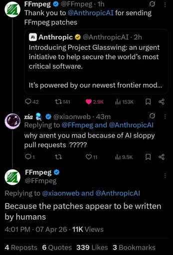 I just assume that since this code submission was done by Anthropic itself - probably to demonstrate how good their AI has became ( I don’t know what is the actual background to this story) - FFmpeg team gave it more consideration as opposed to a random amature.