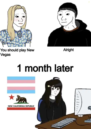 TotallynotJessica@lemmy.blahaj.zoneM to 196@lemmy.blahaj.zoneEnglish · 8 days agoIn rulesponse to the last New Vegas postlemmy.blahaj.zoneimagemessage-square27linkfedilinkarrow-up1245