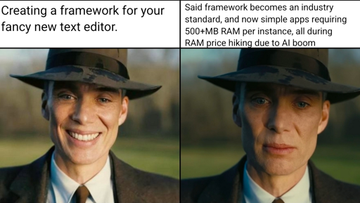 Same here. At first, I thought I was going to get a better Discord experience with the dedicated ‘app’. Nope. Another web app crammed into Electron, multiplying the overall browser footprint on my system. It now happily lives on in a normal browser tab where my ad blockers and user-scripts claw back local control of things.