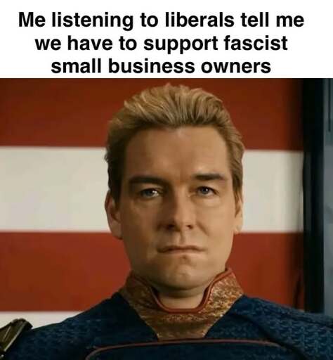minus-squarenotthebees@reddthat.comlinkfedilinkarrow-up0·2 days agoNo the fuck they don’t. The small business owners they like are actually big businesses cosplaying as small businesses.