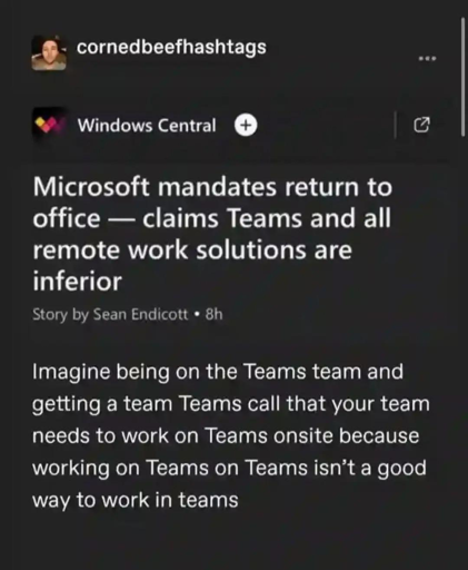 minus-squaredparticiple@sh.itjust.workslinkfedilinkarrow-up0·1 month agoDetails: https://www.geekwire.com/2025/microsoft-sets-new-rto-policy-requiring-employees-in-the-office-3-days-per-week/