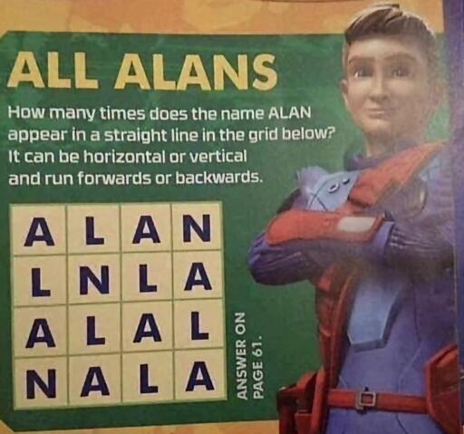 minus-squarefleurc@lemmy.blahaj.zonelinkfedilinkEnglisharrow-up3·2 hours ago3 times. Alan appears 3 times.