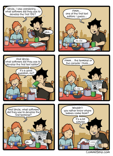 alexei_1917 [mirror/your pronouns]@hexbear.net to Programmer Humor@lemmy.mlEnglish · 2 months ago"In the beginning, there was the terminal."lemmy.mlimagemessage-square12linkfedilinkarrow-up11arrow-down10