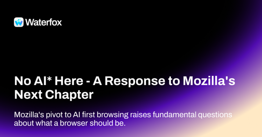 Some will argue that AI browsers are inevitable, that we’re fighting against the tide of history. Perhaps. AI browsers may eat the world. But the web, despite having core centralised properties, is fundamentally decentralised. There will always be alternatives. If AI browsers dominate and then falter, if users discover they want something simpler and more trustworthy, Waterfox will still be here, marching patiently along. We’ve been here before. When Firefox abandoned XUL extensions, Waterfox Classic preserved them. When Mozilla started adding telemetry and Pocket and sponsored content, Waterfox stripped it out. I like to think that where there is want for a browser that simply respects you, Waterfox has delivered.