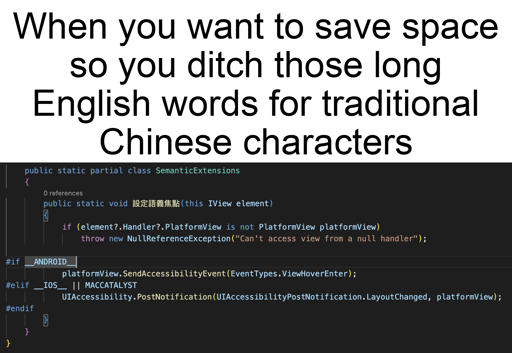 0·3 days agoi dunno, i just found out they were encoded with UTF-16. but c# uses UTF-16 for strings, so i went with a c# repo. that’s right, i cloned a github repo just for a shitpost